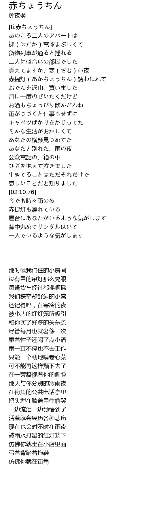 | [02:39.24] | 赤提灯も濡れている |
