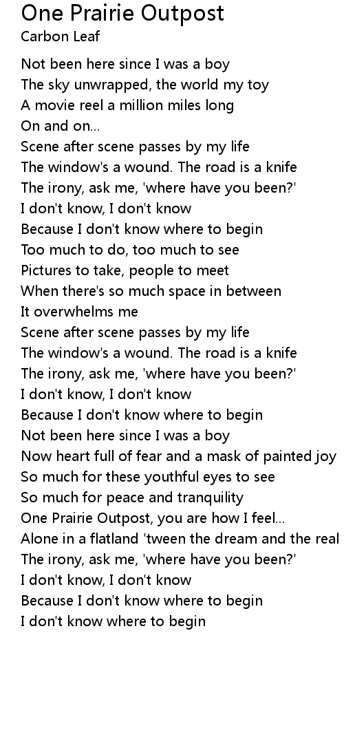 One Prairie Outpost, you are how I feel... |