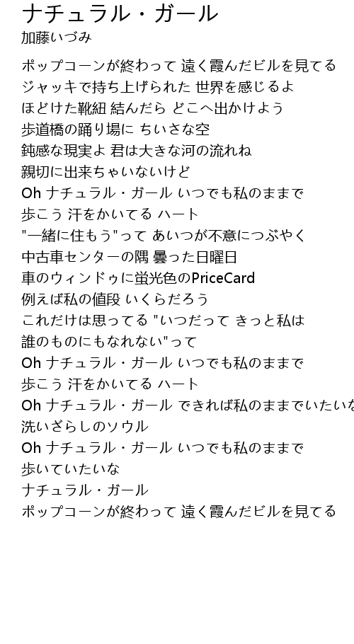 | Oh ナチュラル・ガール できれば私のままでいたいな | |