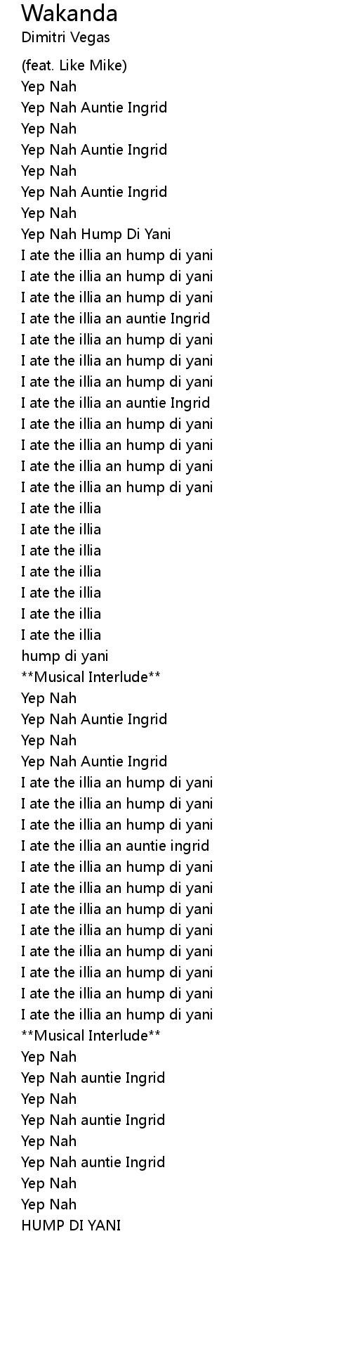 I ate the illia an hump di yani