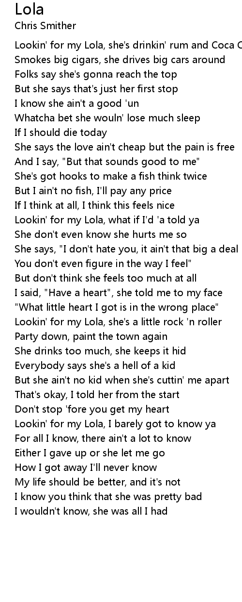 Lookin' for my Lola, she's drinkin' rum and Coca Cola |