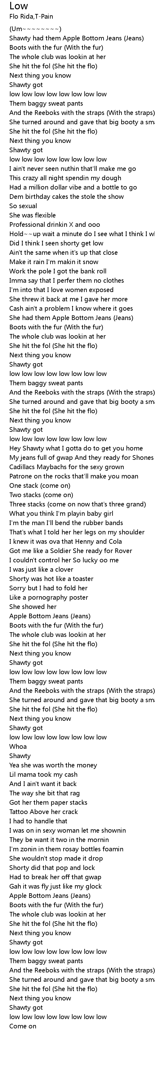 | Shawty had them Apple Bottom Jeans (Jeans) | |