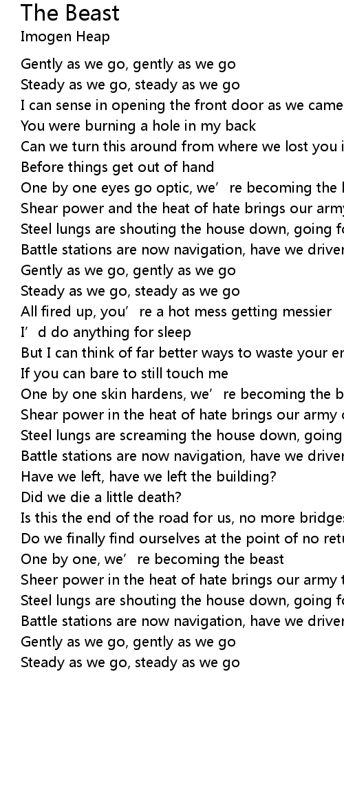 | One by one, we’re becoming the beast | |