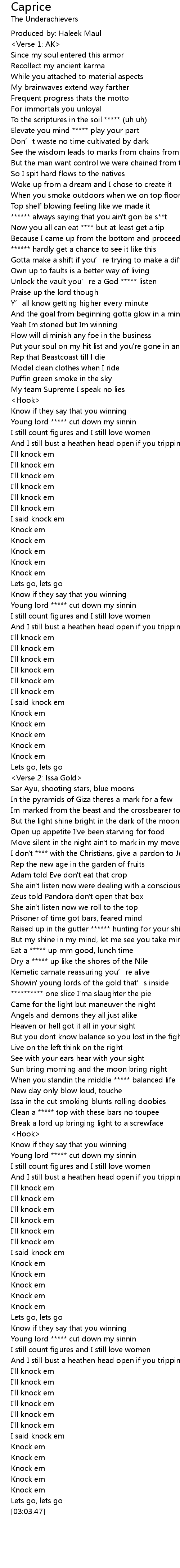 | [00:52.82] | Unlock the vault you’re a God ***** listen |