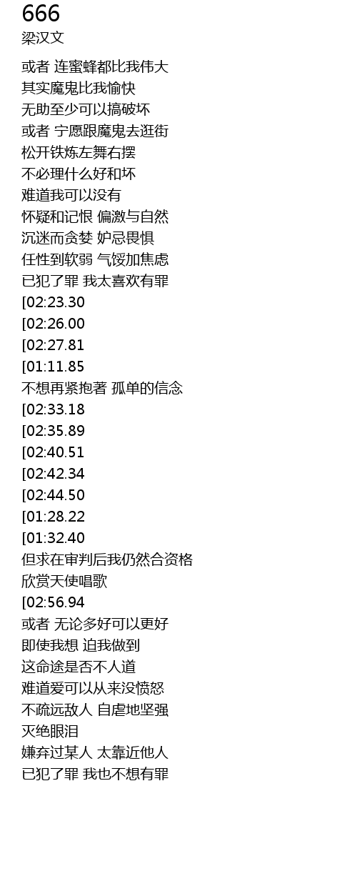 | [02:20.18] | 已犯了罪 我也不想有罪 |