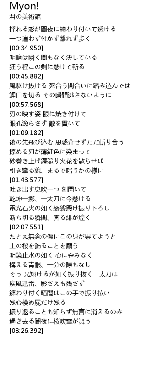 | [03:09.467] | 残心検め屍だけ残る |