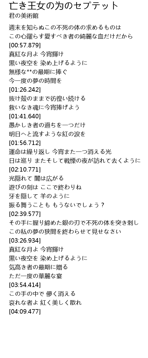 | [00:58.098] | 真紅な月よ 今宵輝け |