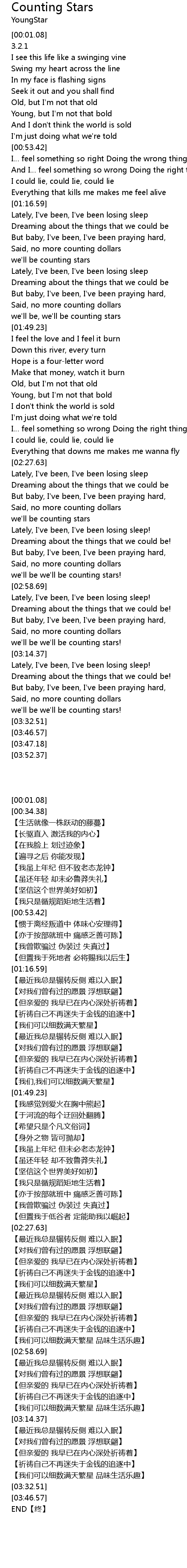 | [01:45.88] | we' ll be, we' ll be counting stars |