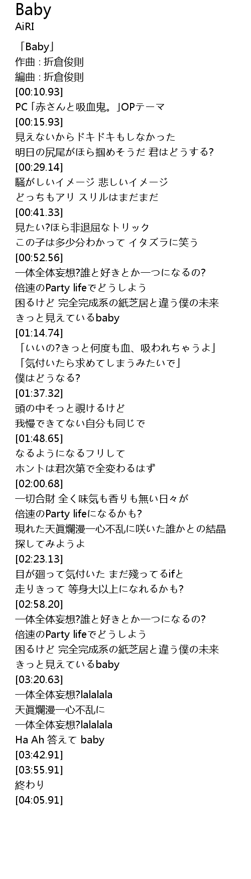 | [00:12.93] | PC 「赤さんと吸血鬼。」OPテーマ |