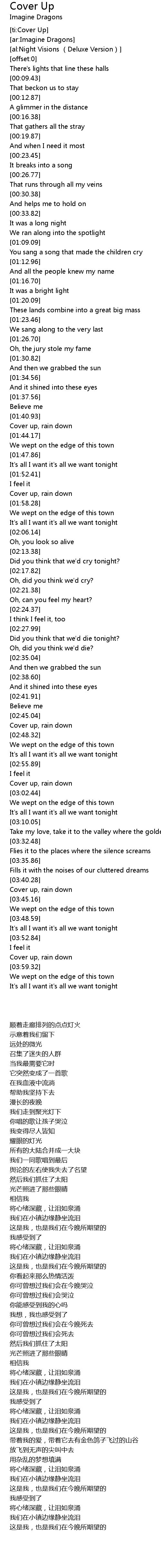 | [03:36.74] | Fills it with the noises of our cluttered dreams |