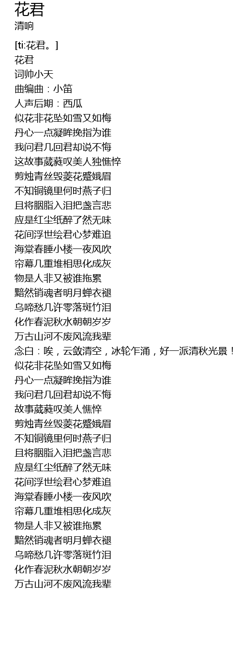 | [00:28.631] | 似花非花坠如雪又如梅 |