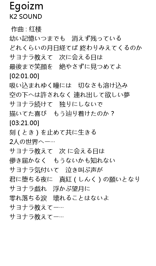 | [02:58.80] | サヨナラ続けて 独りにしないで |