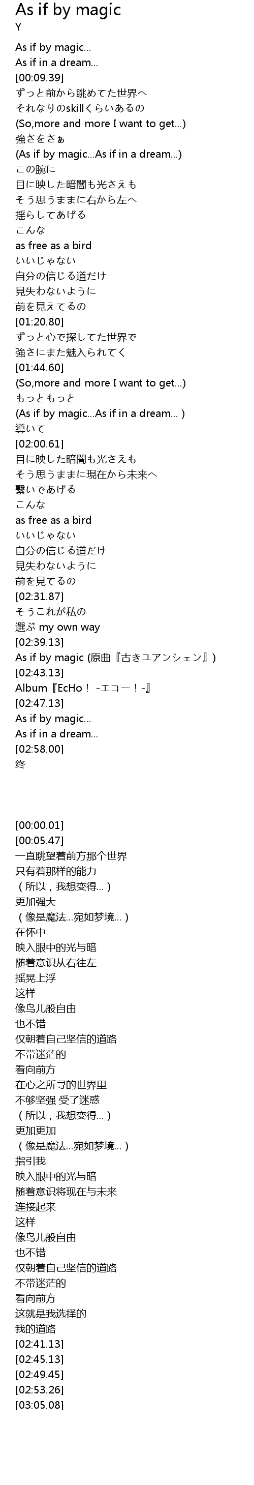 | [02:41.13] | As if by magic (原曲『古きユアンシェン』) |