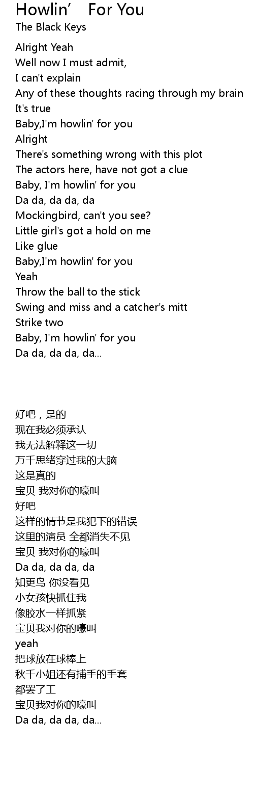 Baby, I'm howlin' for you |
