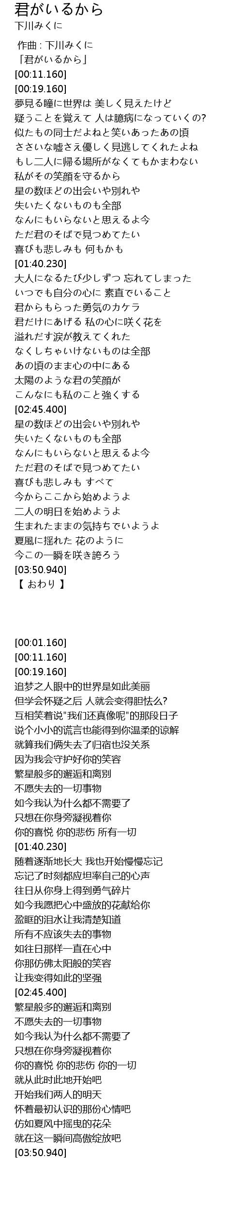 | [03:16.290] | ただ君のそばで見つめてたい |