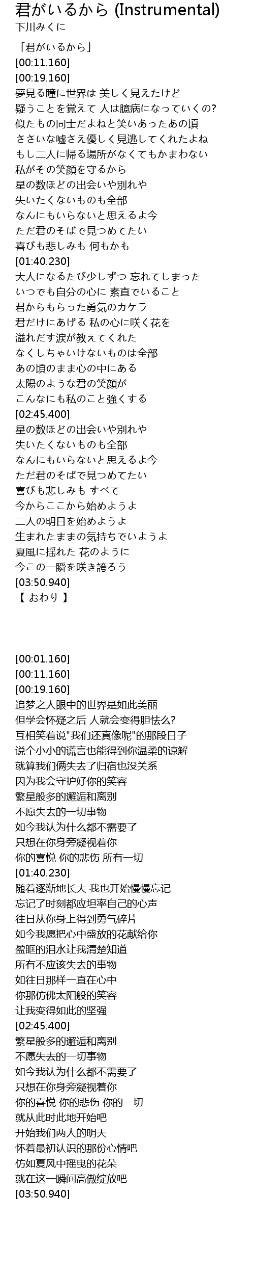 | [03:16.290] | ただ君のそばで見つめてたい |