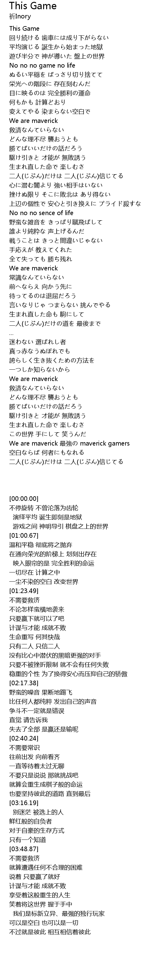 | [00:55.90] | 游戏之间 神明导引 棋盘之上的世界 |