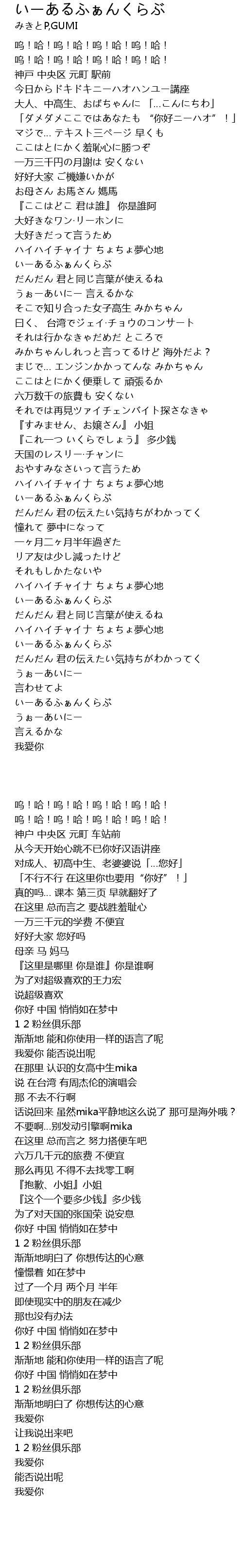 | [00:42.46] | 「ダメダメここではあなたも “你好ニーハオ”!」 |