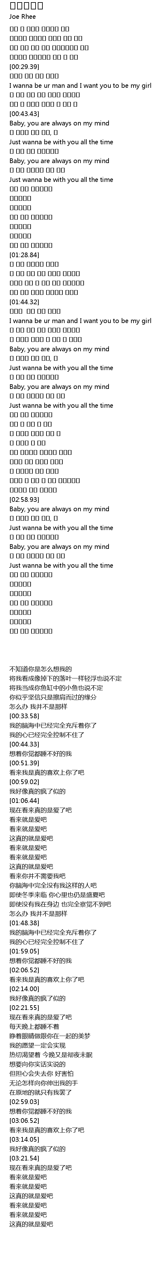 | [00:33.58] | I wanna be ur man and I want you to be my girl |