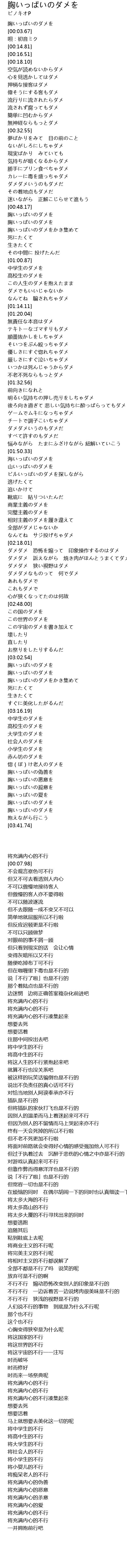 | [00:00.00] | 胸いっぱいのダメを |