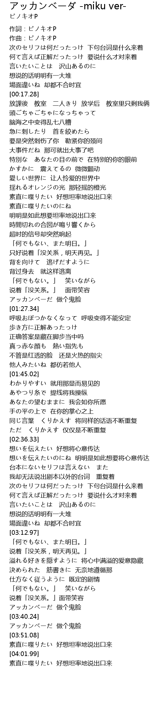 | [00:00.00] | 作詞:ピノキオP |