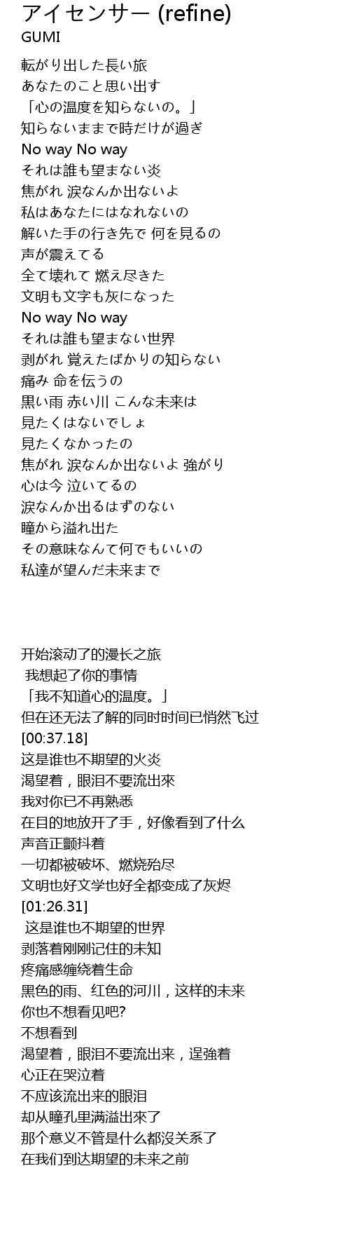 | [01:45.33] | 黑色的雨、红色的河川,这样的未来 |