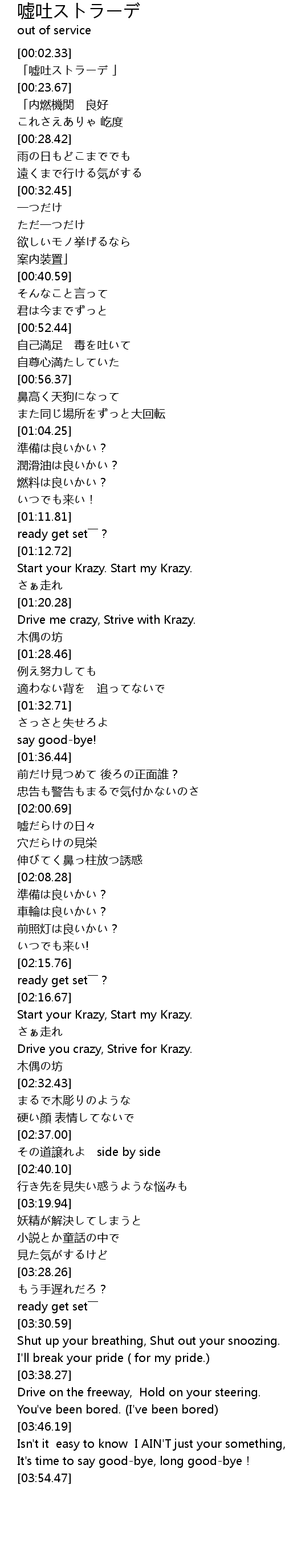 | [00:08.84] | 「嘘吐ストラーデ 」 |