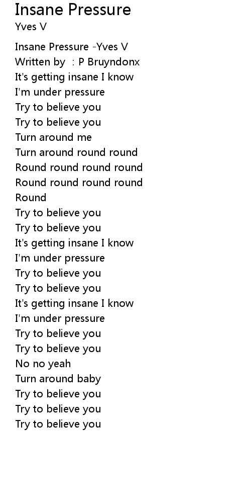 | [00:00.327] | Insane Pressure -Yves V |