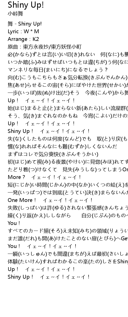 | [01:54.91] | Shiny Up! !! |