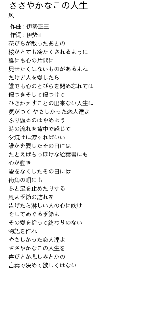 | [00:00.00] | 作曲 : 伊勢正三 |
