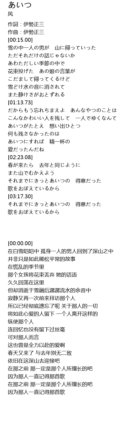 | [00:18.62] | 雪の中一人の男が 山に帰っていった |