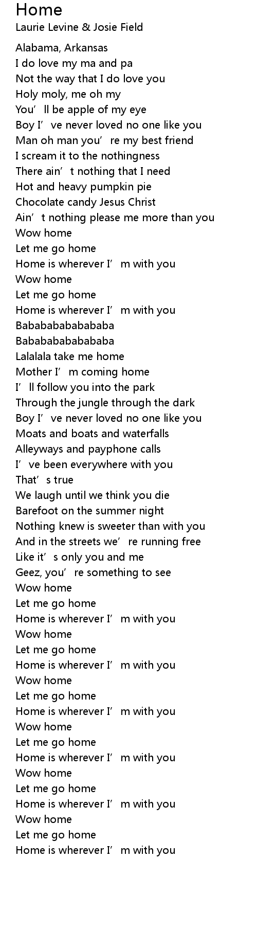 | [01:05.50] | Home is wherever I’m with you |