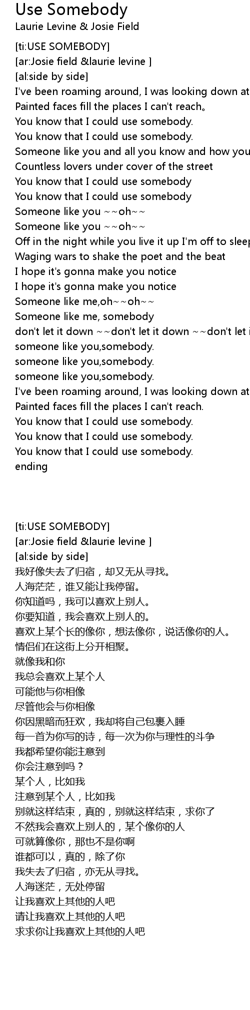 | [ti:USE SOMEBODY] | |