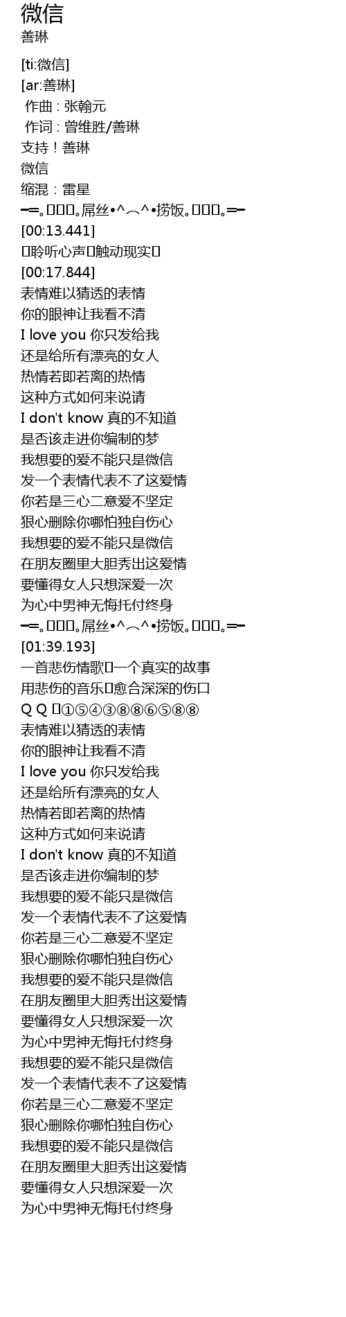 | [02:39.560] | 我想要的爱不能只是微信 |