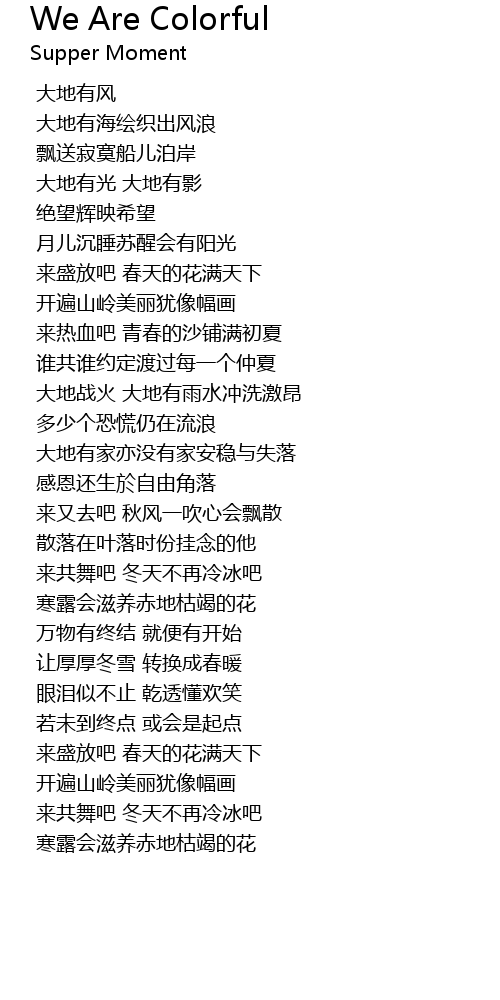 | 歌曲 | We Are Colorful |