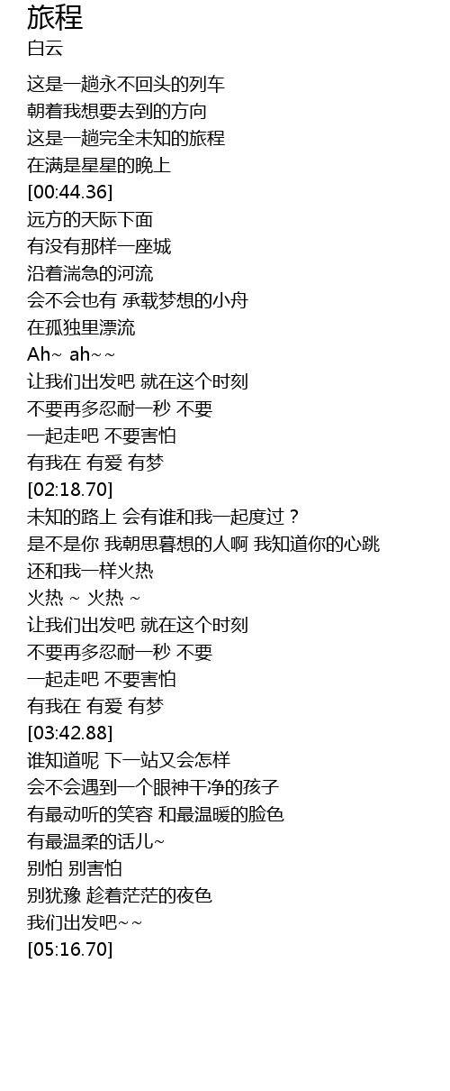| [00:16.64] | 这是一趟永不回头的列车 |