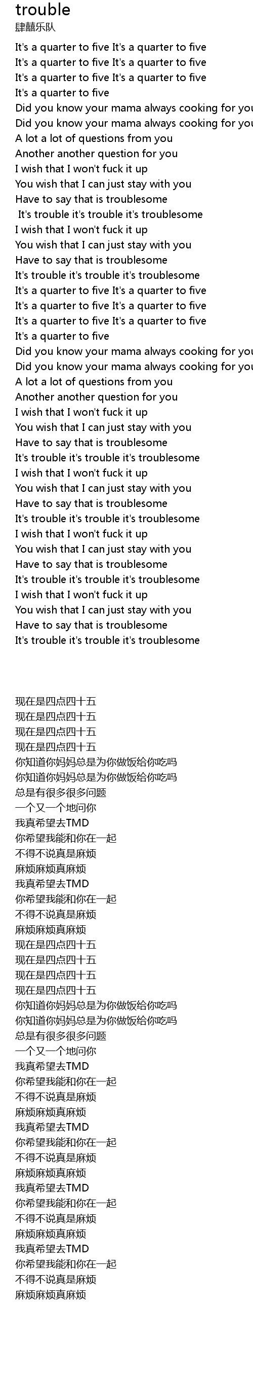 It's trouble it's trouble it's troublesome |