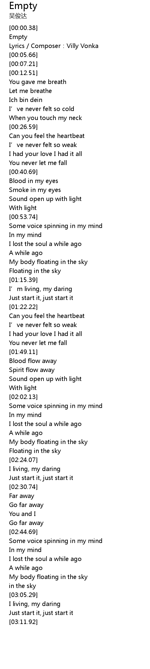 | [02:58.92] | My body floating in the sky |