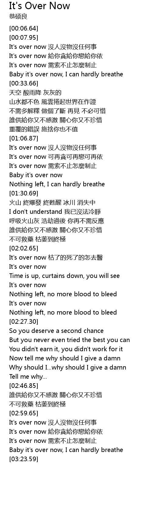 | [03:06.00] | It' s over now gei ni tan gei ni lian gei ni yi |