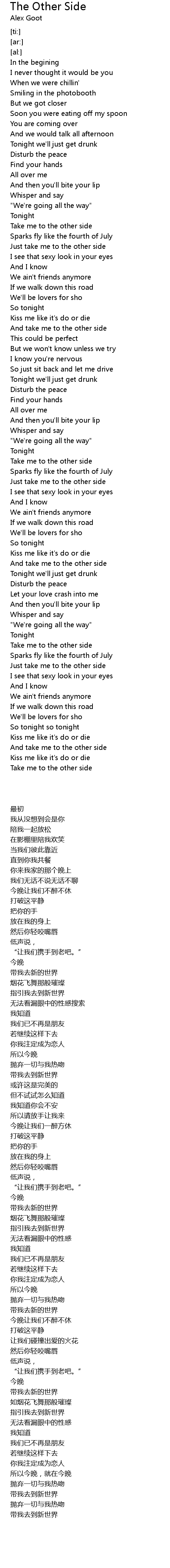And take me to the other side |