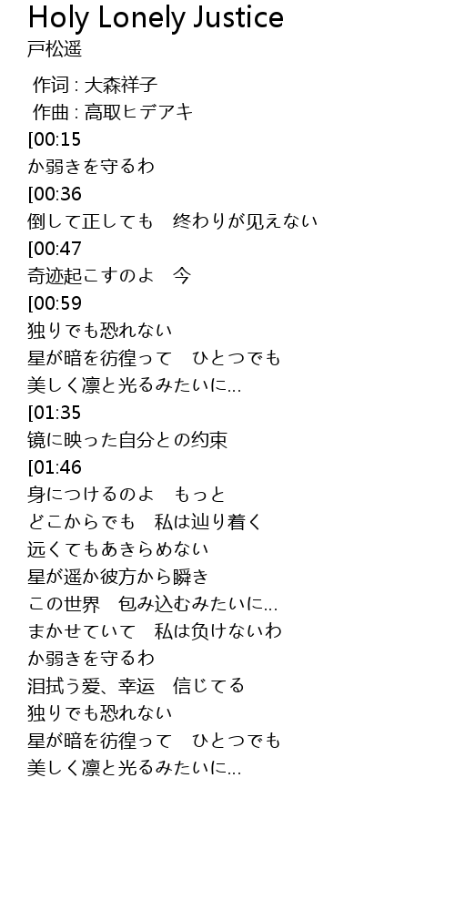 | 歌曲 | Holy Lonely Justice |