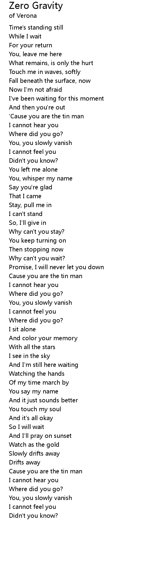 Cause you are the tin man |