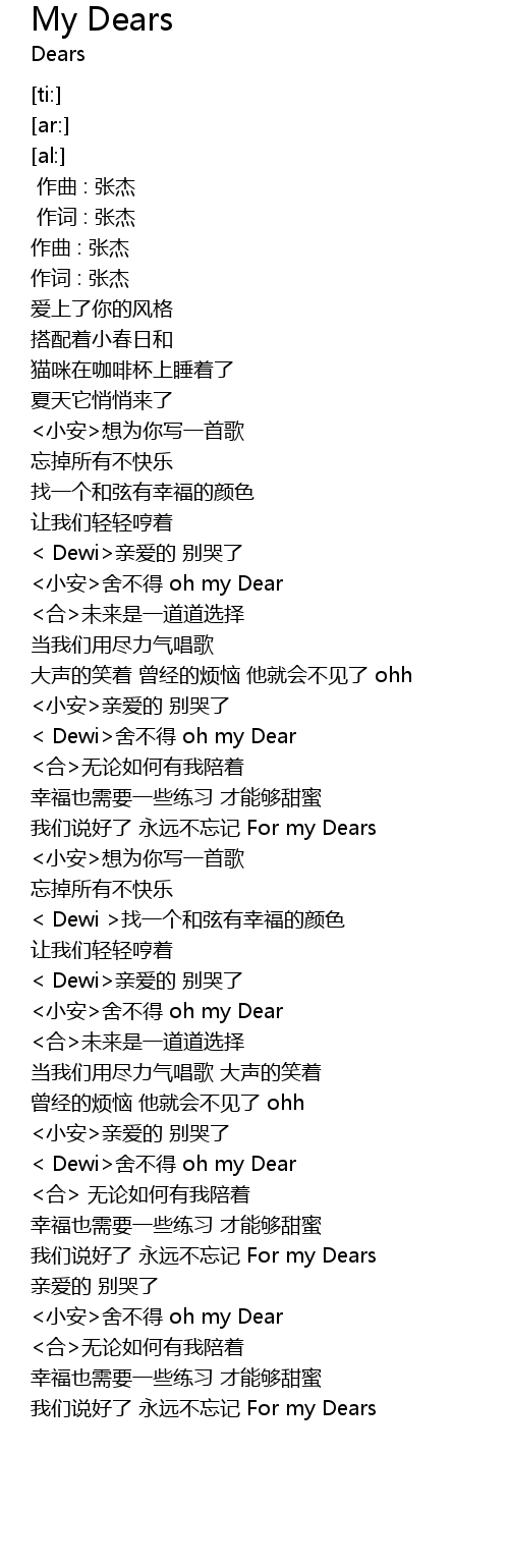 | [02:06.97] | xiao an she bu de oh my Dear |