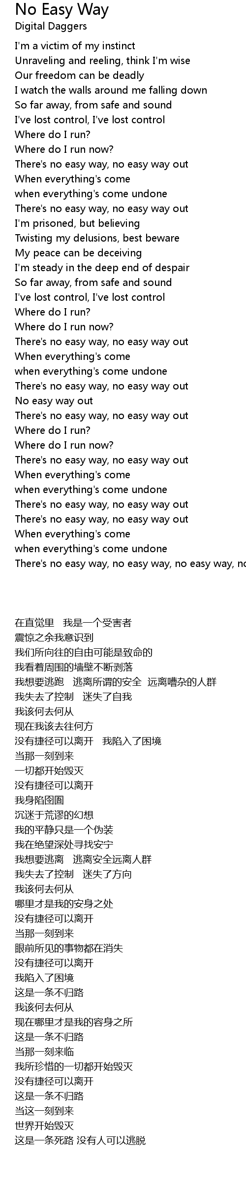 There's no easy way, no easy way out |