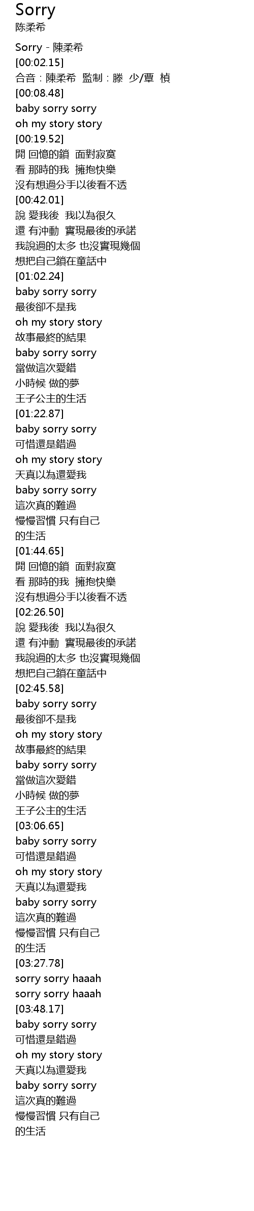 | [00:05.93] | 合音:陳柔希 監制:滕 少/覃 楨 |