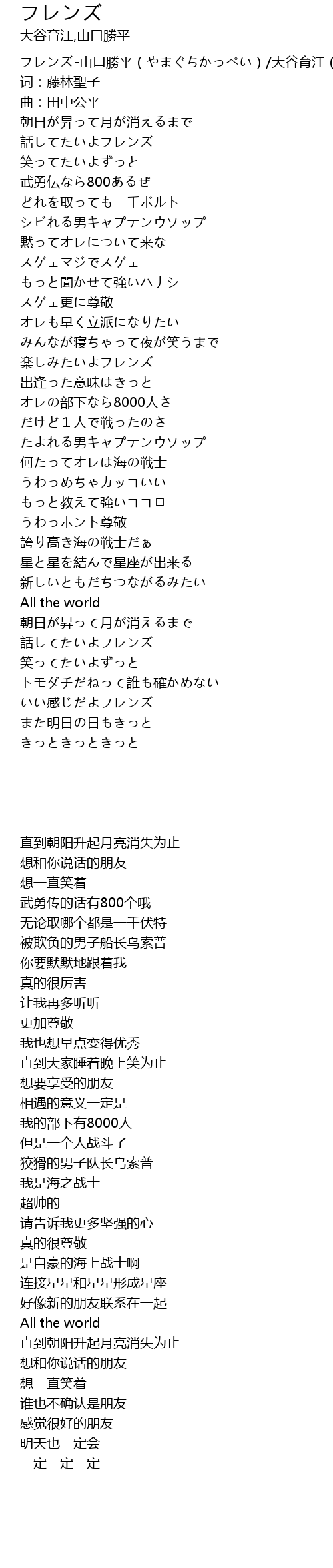 | [00:00.299] | フレンズ-山口勝平(やまぐちかっぺい)/大谷育江(おおたにいくえ) |