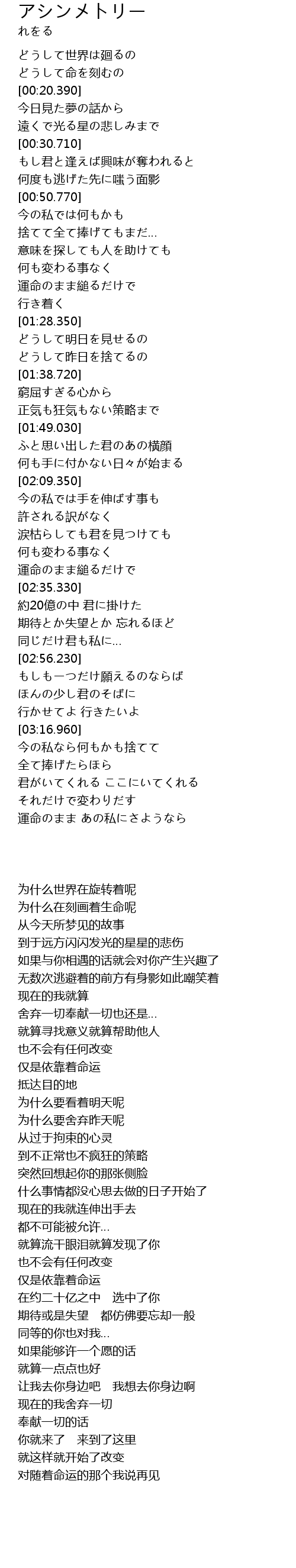| [02:19.910] | 涙枯らしても君を見つけても |