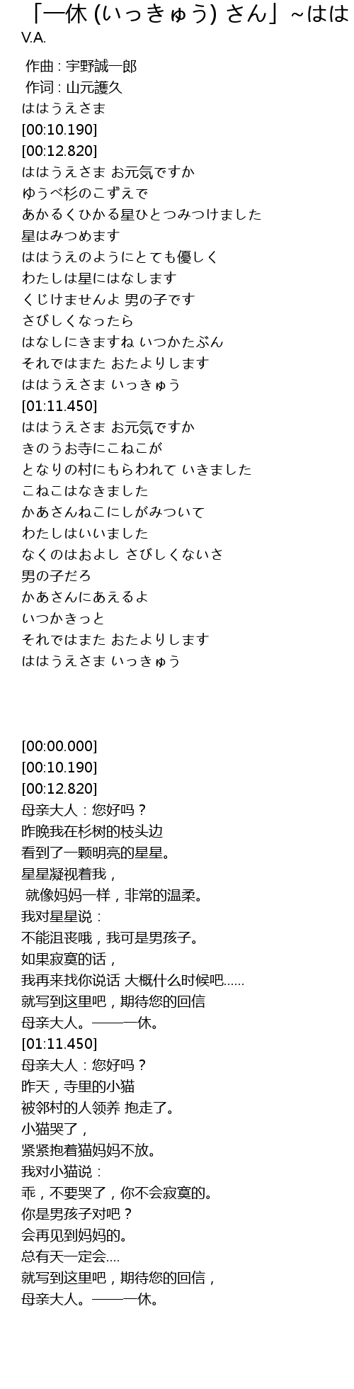 | [02:12.880] | 母亲大人。——一休。 |