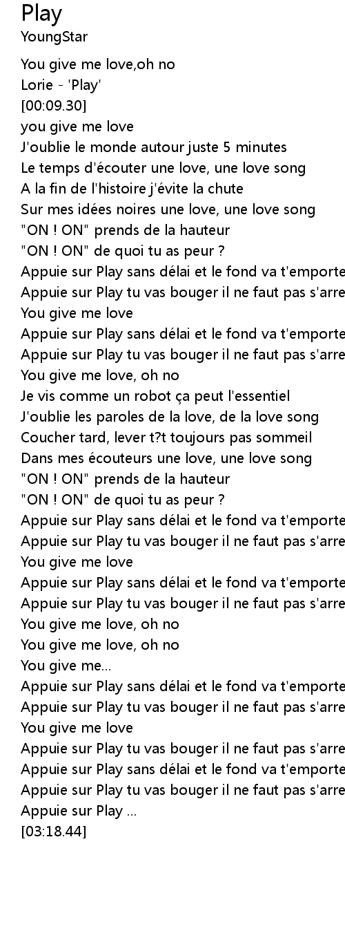 | [03:08.64] | Appuie sur Play tu vas bouger il ne faut pas s' arreter |
