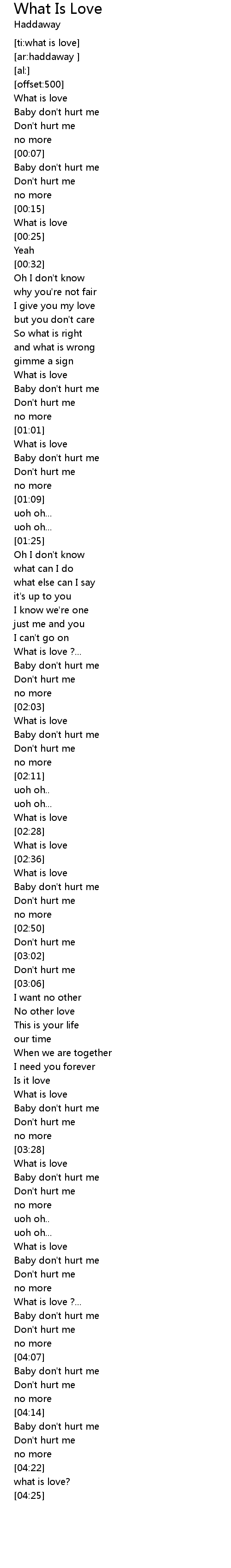 | [00:02] | Baby don't hurt me |